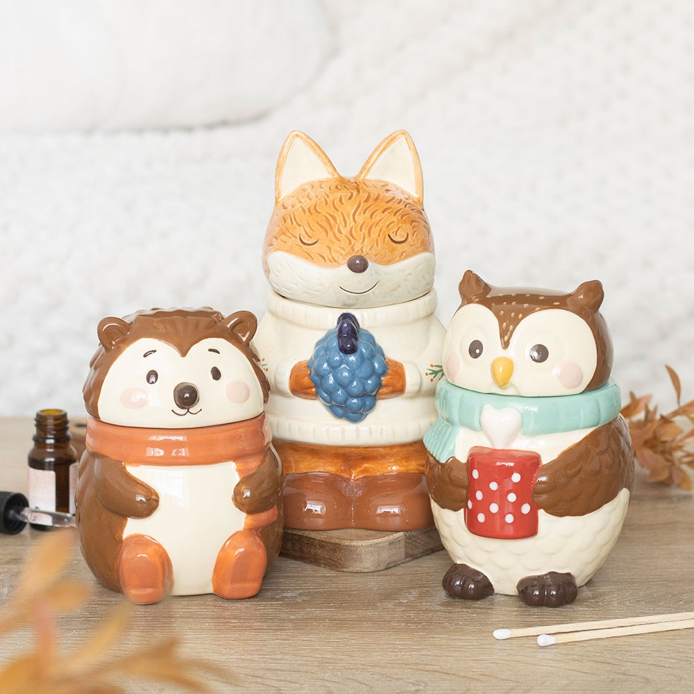 Verleihen Sie Ihrem Zuhause mit diesem Keramik-Ölbrenner und Wachserhitzer „Flynn Fox“ einen verspielten Wald-Touch – ideal, um Ihr Zuhause mit saisonalen Düften zu erfüllen. Ein tolles Geschenk für alle, die gemütliche Abende zu Hause und herbstlich inspirierte Dekoration lieben. Nehmen Sie während des Gebrauchs immer den Deckel ab. Stellen Sie einfach ein einzelnes Standard-Teelicht in die Aussparung auf der Rückseite und geben Sie ein paar Tropfen verdünntes Duftöl oder Wachs-Melts in die Schale. Entworfen von Something Different Wholesale und Teil der Creature Comforts-Kollektion mit herbstlichen, vom Wald inspirierten Geschenken und Wohnaccessoires.