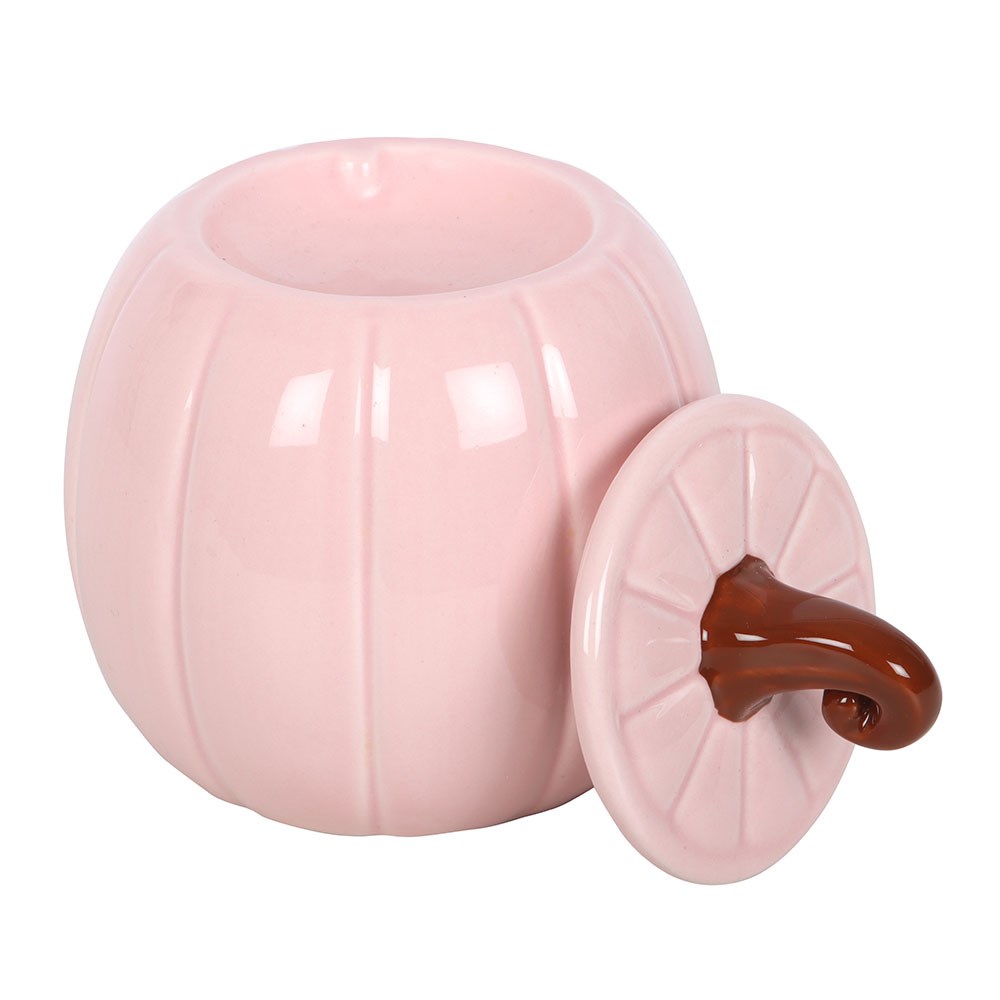 Verleihen Sie Ihrem Zuhause mit diesem rosa Kürbis-Duftlampenbehälter, der sich durch einen sanften, saisonalen Look und einen niedlichen Deckel mit gewundenem Stiel auszeichnet, wohltuende Herbstdüfte. Dieser Duftlampenbehälter eignet sich ideal für kühle Abende zu Hause oder als liebevolles Herbstgeschenk und passt sowohl zu verspielter Herbstdekoration als auch zu ausgefallenen Halloween-Dekorationen. Nehmen Sie den Deckel während des Gebrauchs immer ab. Empfohlen für die Verwendung mit in Wasser verdünntem Duftöl. Entworfen von Something Different Wholesale und Teil der „Pumpkin Pie“-Kollektion mit rosa und orangefarbener Herbstdekoration und Herbstgeschenkartikeln.