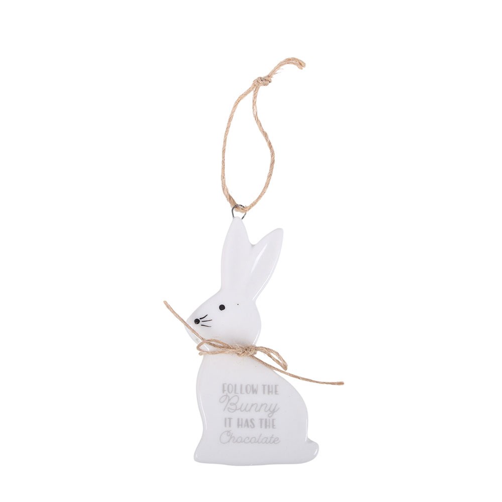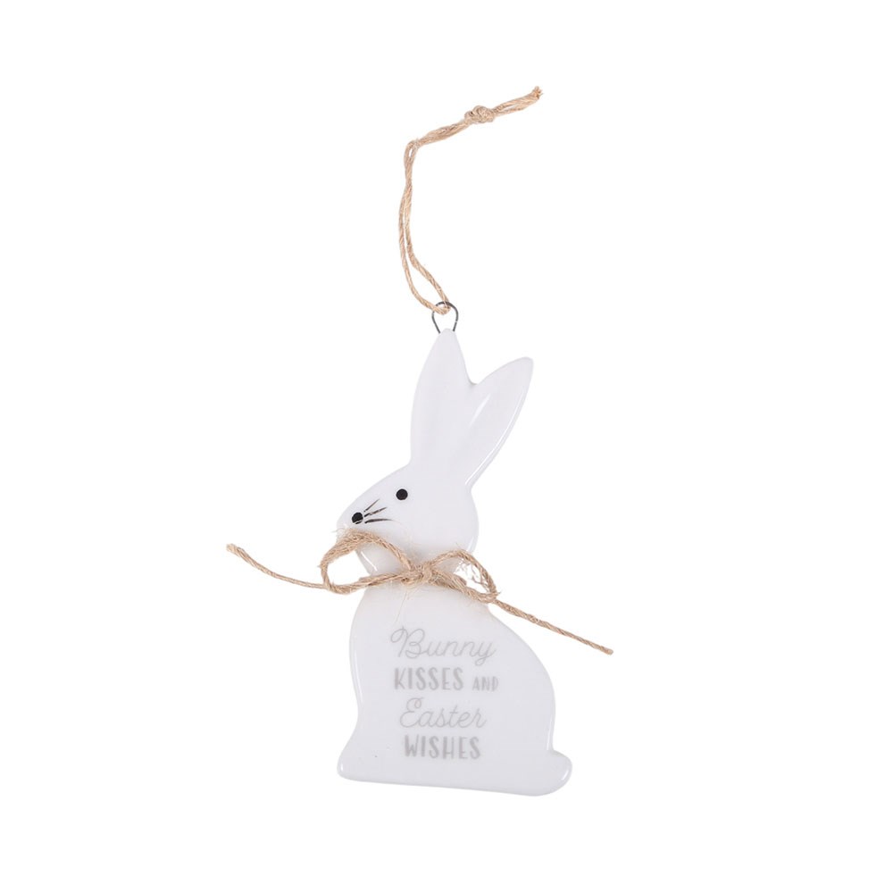Προσθέστε μια γλυκιά εποχιακή πινελιά με αυτά τα κεραμικά κρεμαστά διακοσμητικά λαγουδάκια. Κάθε επίπεδο διακοσμητικό, διαμέτρου 9 εκατοστών, διαθέτει ρουστίκ κορδόνι για εύκολη ανάρτηση και φέρει μία από τις τρεις διαφορετικές φράσεις: «Some Bunny Loves You», «Bunny Kisses and Easter Wishes» και «Follow the Bunny It Has Chocolate». Ιδανικά για να τα κρεμάσετε σε ένα πασχαλινό δέντρο, να διακοσμήσετε κλαδιά ή να τα προσθέσετε σε ανοιξιάτικες συνθέσεις, αποτελούν επίσης ένα υπέροχο μικρό δώρο ή ενθύμιο για τις πασχαλινές γιορτές. Η τιμή είναι ανά τεμάχιο και πωλούνται σε πακέτα των 12, με ισόποση ποικιλία.