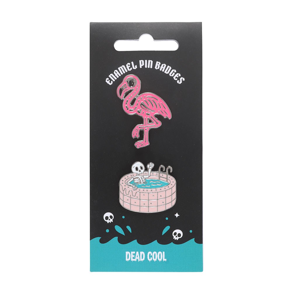 Chapas esmaltadas de esqueleto y flamenco de Dead Cool Chapas esmaltadas de esqueleto y flamenco de Dead Cool