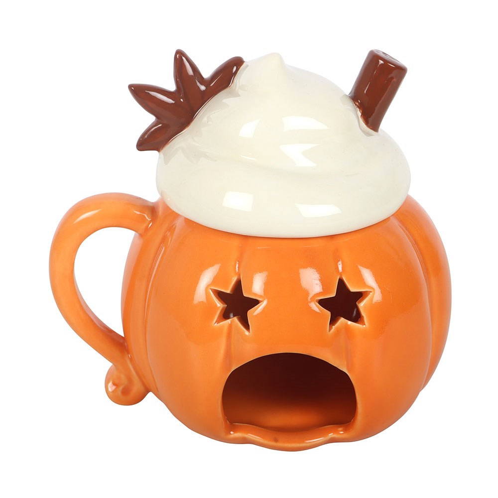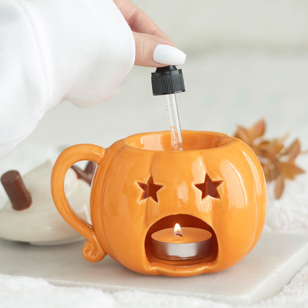 Aporta un toque otoñal a tu hogar con este original quemador de aceite con forma de calabaza, rematado con una tapa estilo nata montada que le da un toque divertido y de temporada. Perfecto para llenar tu espacio con tus fragancias otoñales favoritas, es un regalo encantador para los amantes del otoño y aporta calidez a cualquier salón. Retira siempre la tapa mientras esté en uso. Solo tienes que colocar una vela de té estándar en el hueco de la parte trasera y añadir unas gotas de aceite perfumado diluido o cera fundida en el cuenco. Diseñado por Something Different Wholesale y parte de la colección Pumpkin Pie de decoración y artículos de regalo otoñales en tonos rosa y naranja.