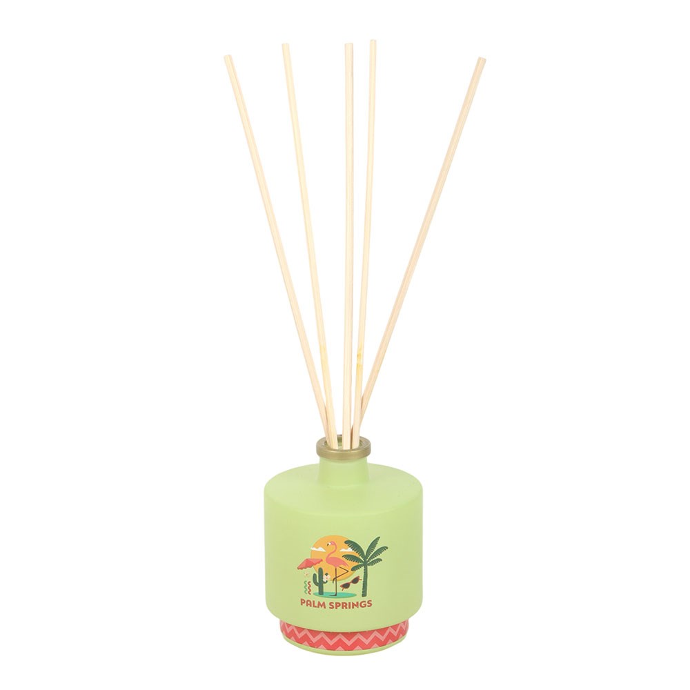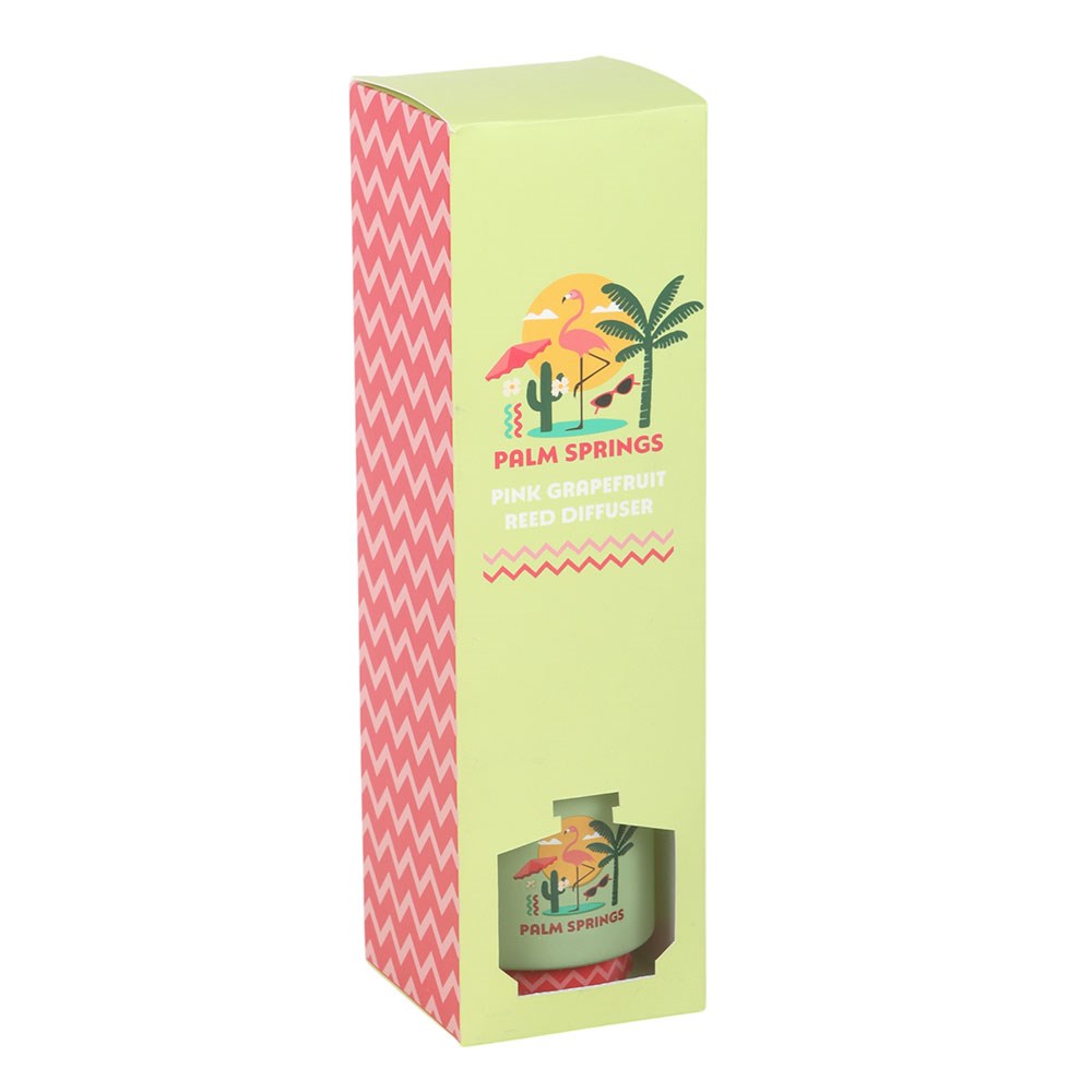Add a splash of retro sunshine with this Palm Springs pink grapefruit reed diffuser, bursting with zesty freshness. A brilliant pick for brightening living spaces with California sunshine or gifting to lovers of playful, travel-inspired decor. 100ml. Do not ingest. Keep away from fire. Designed by Something Different Wholesale and part of the Scents of Adventure collection of travel-themed home fragrance gifts and home decor.
