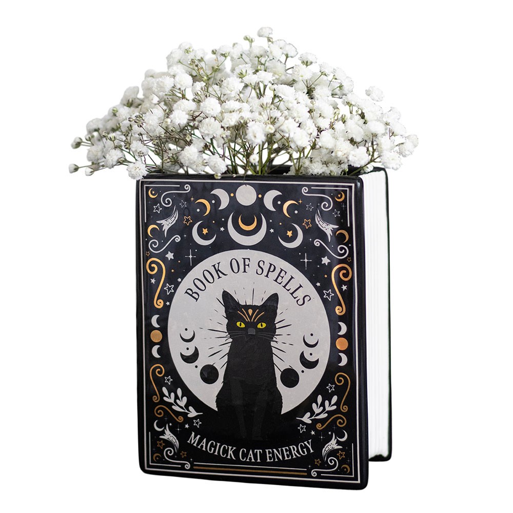 Vase en forme de livre « Black Cat Magick »