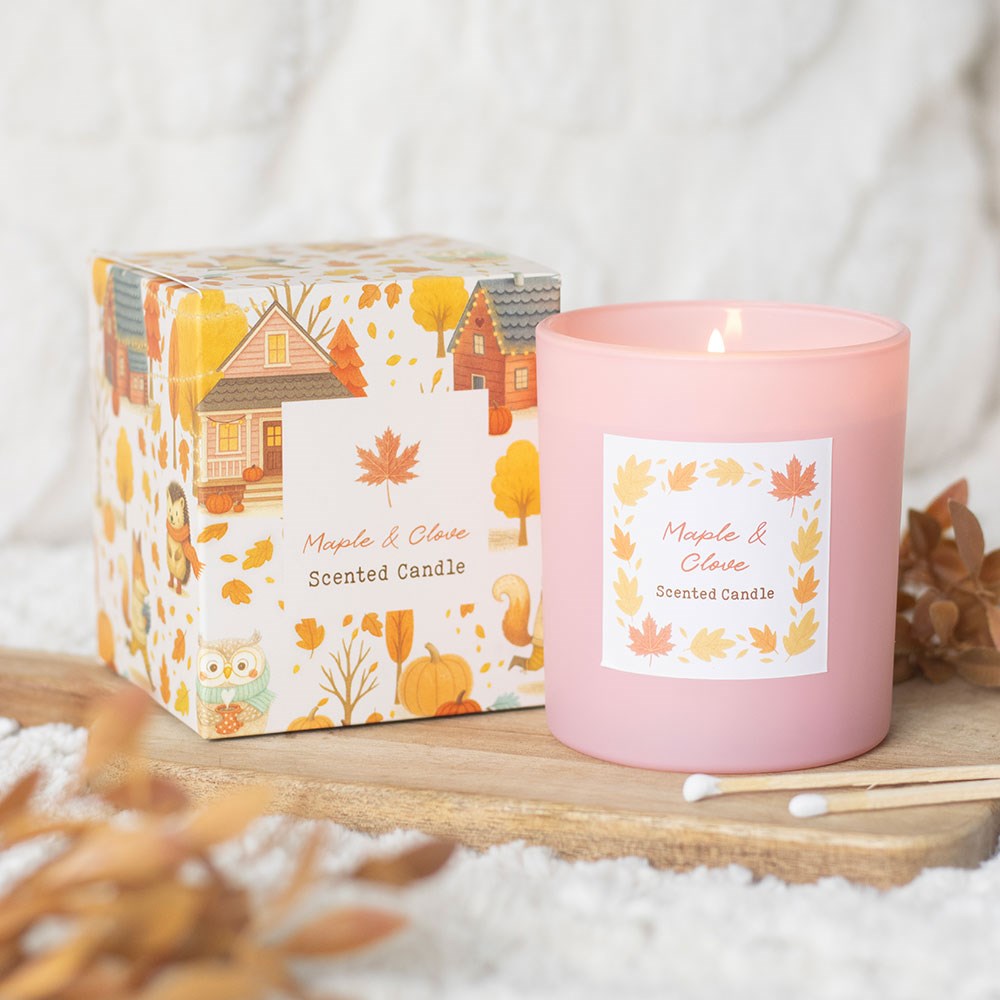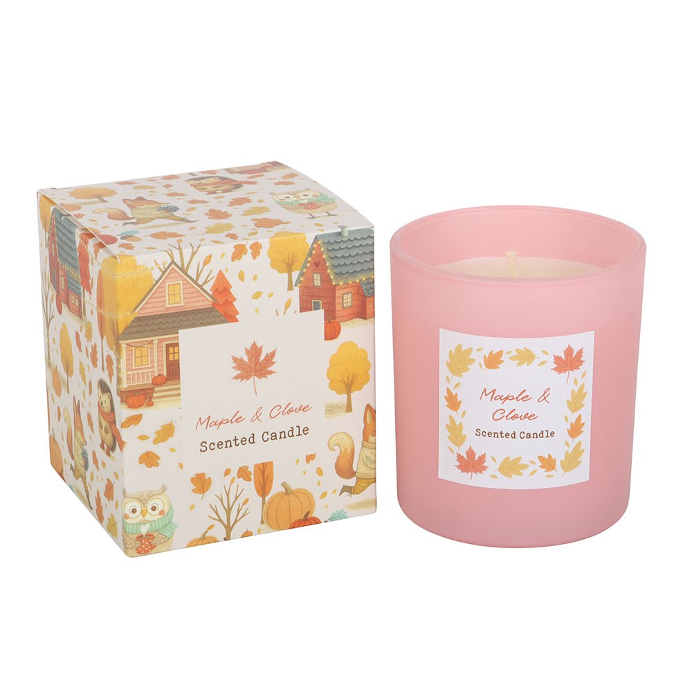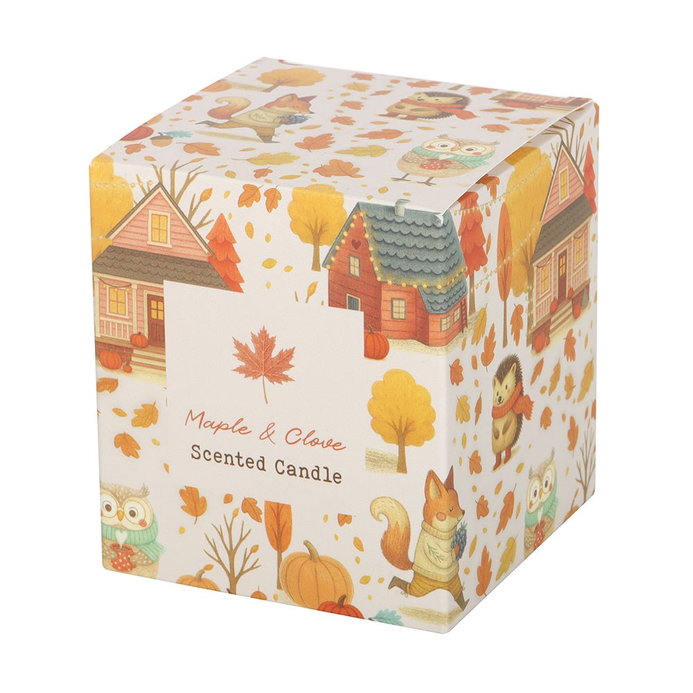 Créez une ambiance chaleureuse et accueillante grâce à cette bougie en verre parfumée à l'érable et au clou de girofle, idéale pour apporter une touche de chaleur à n'importe quel espace. Un joli complément à une décoration automnale ou un cadeau de saison pour ceux qui apprécient les parfums riches et réconfortants. Durée de combustion d'environ 28 heures. Fabriquée en cire de paraffine. Ne laissez jamais une bougie allumée sans surveillance. Conçue par Something Different Wholesale et issue de la collection Creature Comforts, qui propose des cadeaux et des objets de décoration d'intérieur inspirés des forêts en automne.