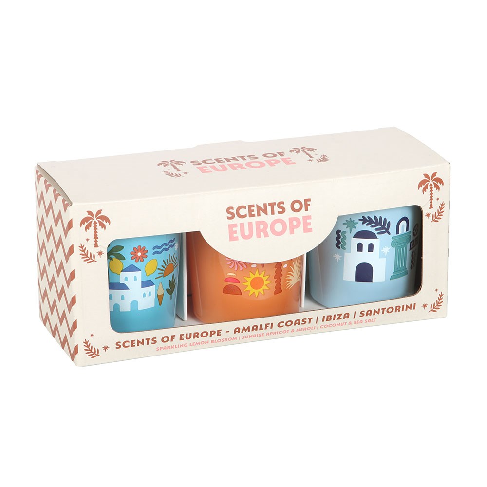 Voyagez à travers l'Europe sans quitter votre domicile grâce à ce coffret de bougies parfumées aux couleurs vives, inspiré de la côte amalfitaine (fleurs de citronnier pétillantes), d'Ibiza (abricot et néroli) et de Santorin (noix de coco et sel marin). Magnifiquement présenté dans un coffret cadeau, ce trio constitue un cadeau attentionné pour les amateurs de voyages et est idéal pour apporter une touche de couleur et de parfum à n'importe quelle pièce. Durée de combustion d'environ 10 heures par bougie. Fabriqué à partir de cire de paraffine. Ne laissez jamais une bougie allumée sans surveillance. Conçu par Something Different Wholesale et faisant partie de la collection Scents of Adventure, une gamme de cadeaux parfumés et d'articles de décoration d'intérieur sur le thème du voyage.