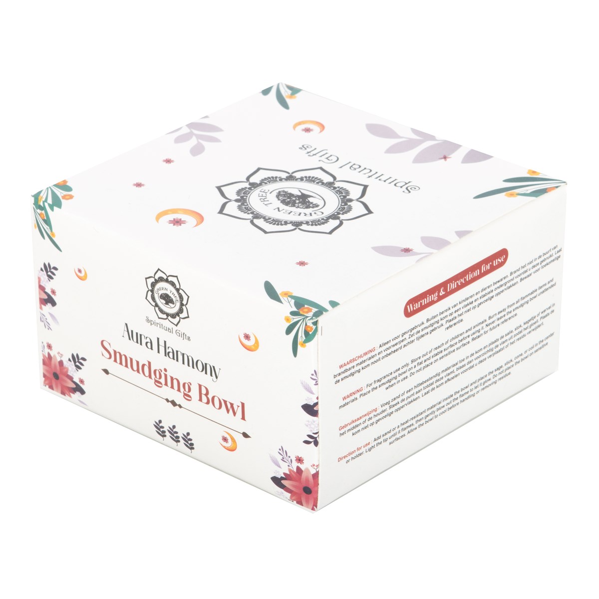 Ideal for altar rituals and home cleansing, this metal smudge bowl features a crescent moon in a brushed white design and a copper tone interior. The deep bowl shape is perfect for holding smudge sticks, herbs, or incense during burning.