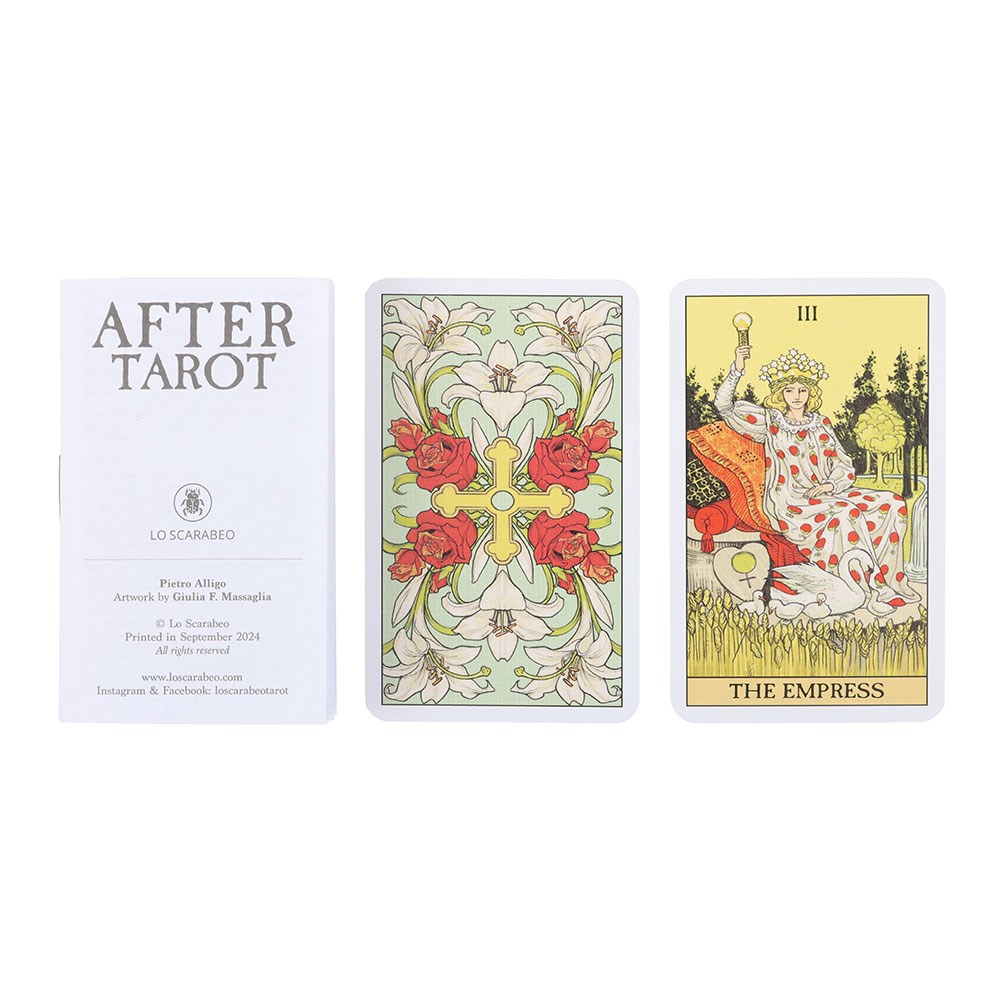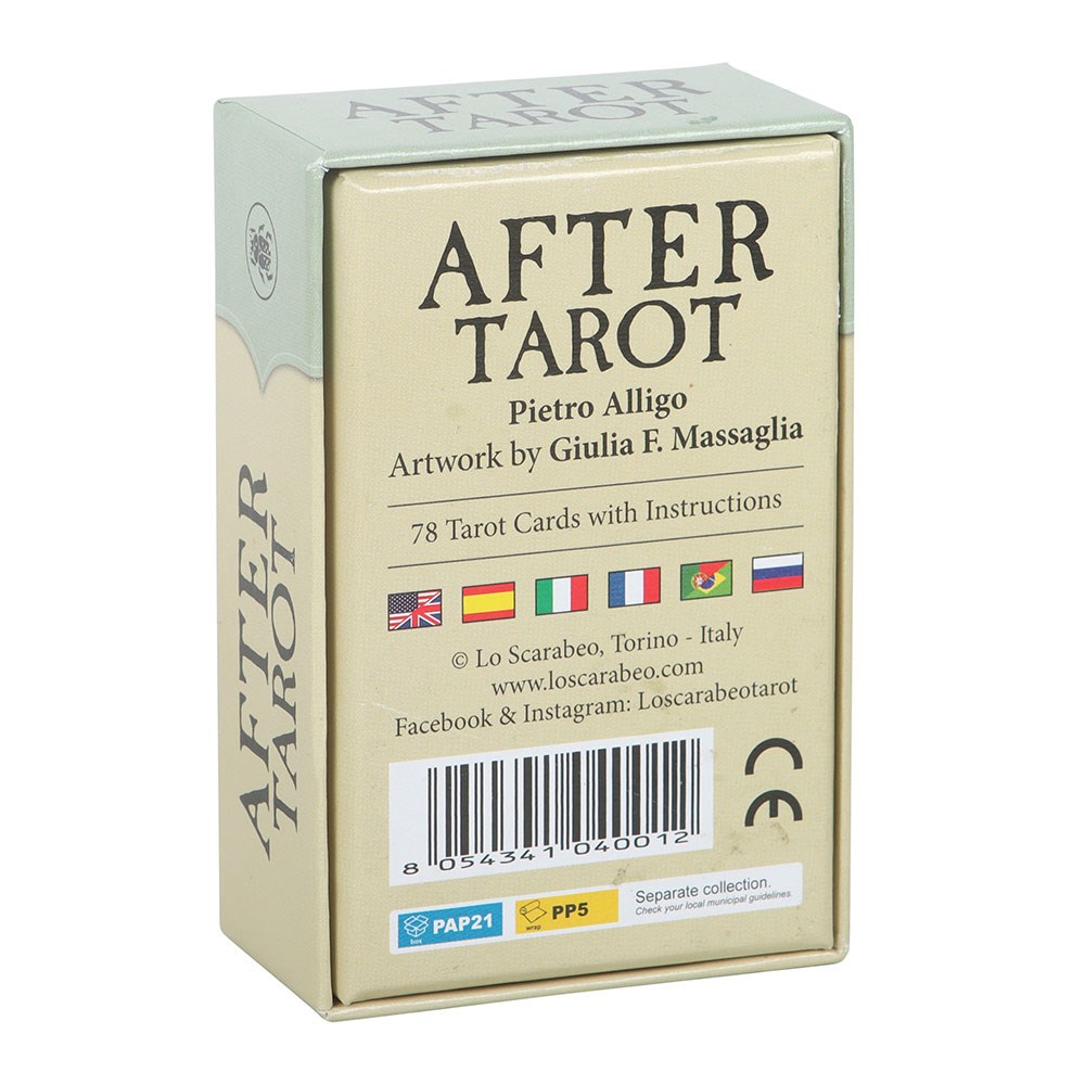 When looking at the scenes depicted in tarot cards, have you ever wondered what the figures would look like if they were portrayed a few seconds or minutes later? After Tarot was conceived by Pietro Alligo to satisfy this fantasy: each Arcanum presents the well-known archetypes a few moments after what is shown in the cards of the regular Rider-Waite-Smith tradition. This clever gimmick offers a unique view of the most popular tarot archetypes in the world, making After Tarot a fan-favourite product. This portable Mini edition gives you a chance to take a smaller version of After Tarot wherever you go.