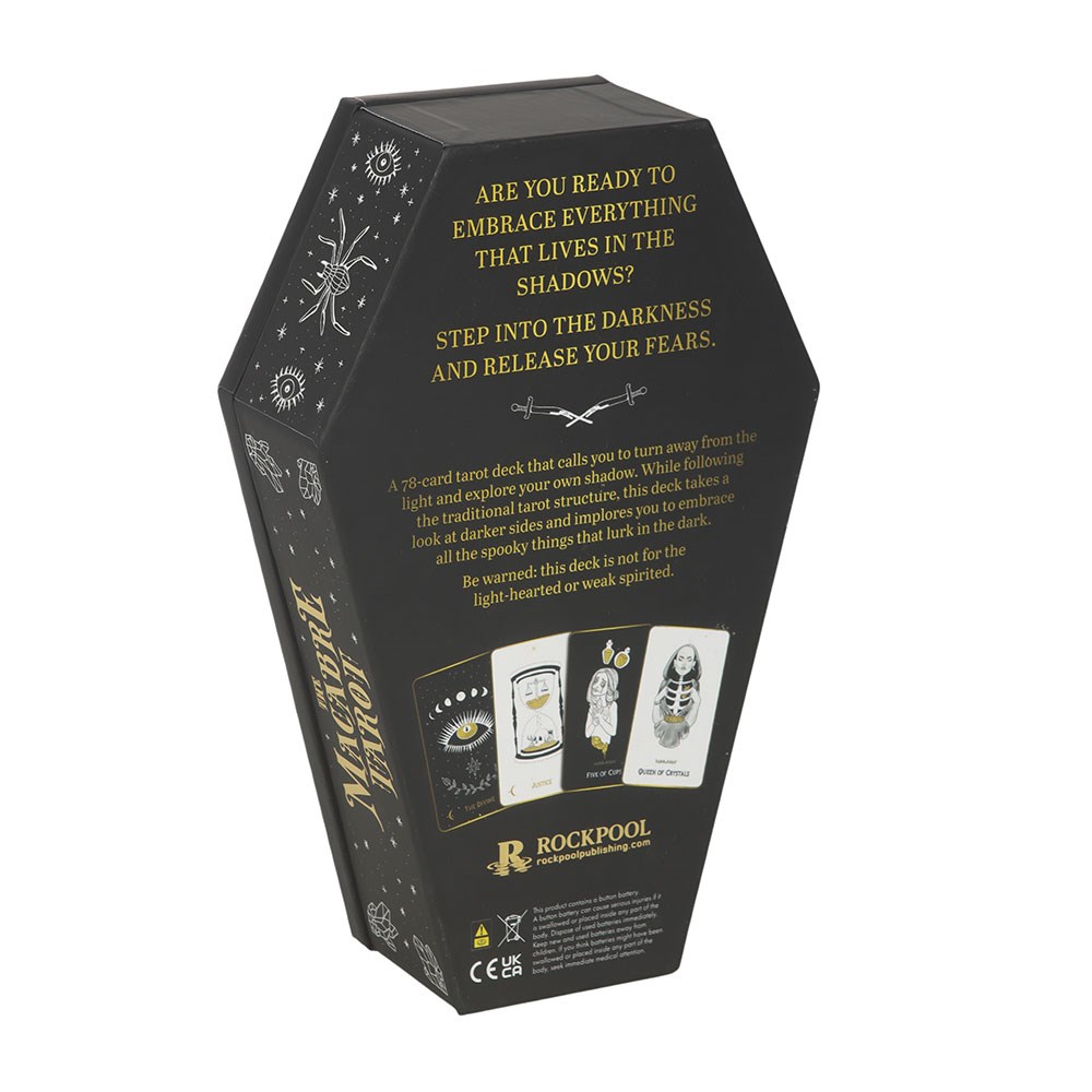 This striking coffin shaped tarot deck invites you to step into the shadows and explore the darker side of tarot and the self. Following the traditional tarot structure, the 78 cards reimagine the Major and Minor Arcana through macabre imagery and shadow focused themes, encouraging deep introspection and fearless self exploration. Accompanied by a detailed guidebook, this deck is designed for readers who are ready to confront hidden fears, embrace the unknown and journey into the depths of the psyche.