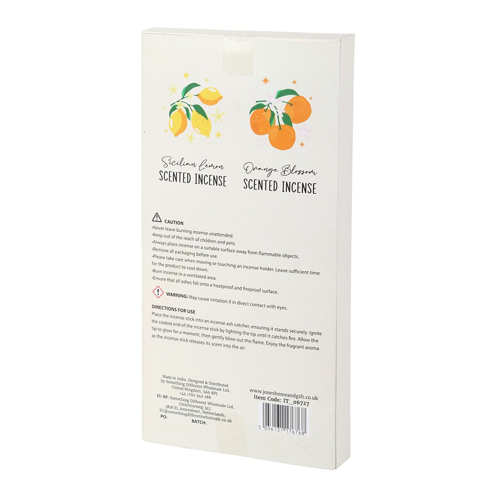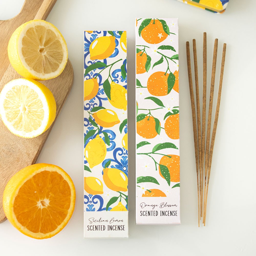 This duo of incense sticks captures the feel of long, lazy days in southern Italy with uplifting scents of Sicilian Lemon and Orange Blossom. Bold packaging and breezy fragrance make this the ultimate summer home vibe. Vegan and hand rolled in India using high-quality fragrance. Each pack contains 30 incense sticks (60 total). Please practice caution when burning, use a suitable incense stick holder and never leave lit incense unattended. Designed by Something Different Wholesale and part of the Italian Summer collection of Mediterranean-inspired gifts and home decor.
