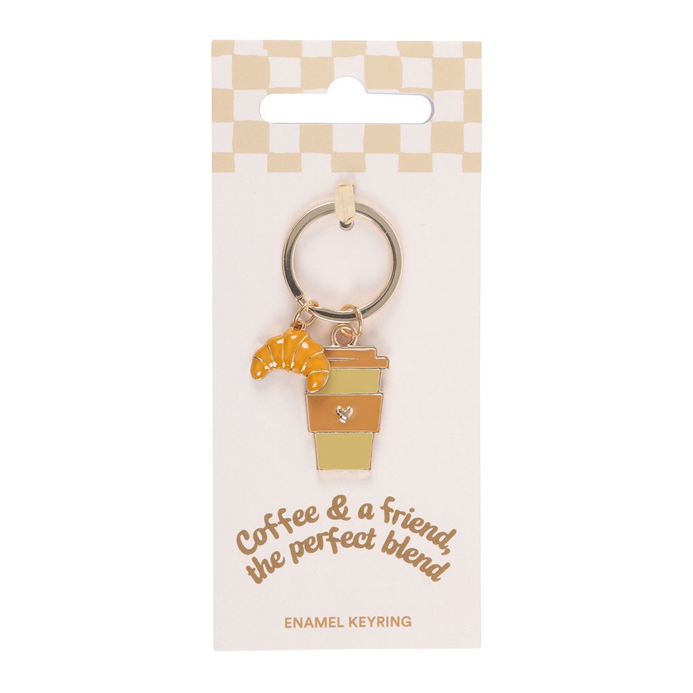 Celebra la tua combinazione preferita con questo resistente portachiavi smaltato, che rende omaggio al legame tra un ottimo caffè e una compagnia ancora migliore. È un accessorio elegante che aggiunge un tocco di personalità ai tuoi oggetti di uso quotidiano. Progettato da Something Different e parte della collezione The Brunch Club di originali regali per buongustai.