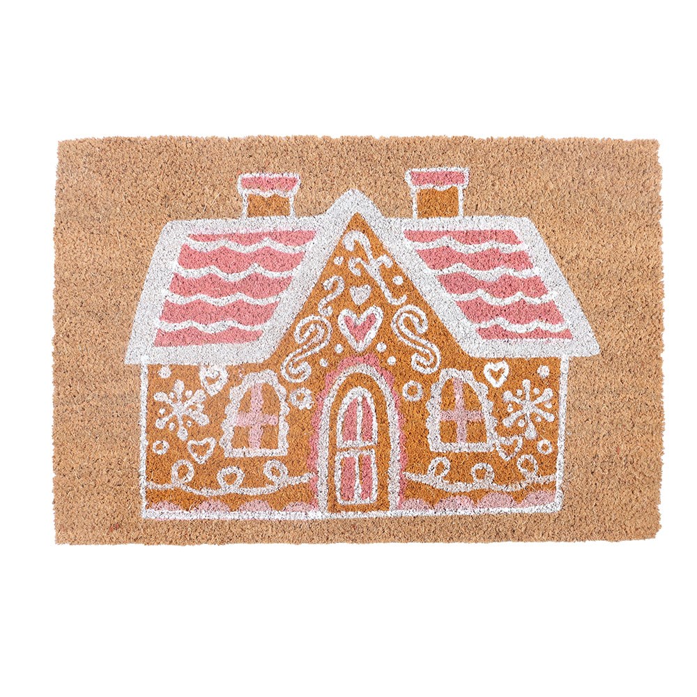 Deurmat met motief van een natuurlijk roze peperkoekhuisje