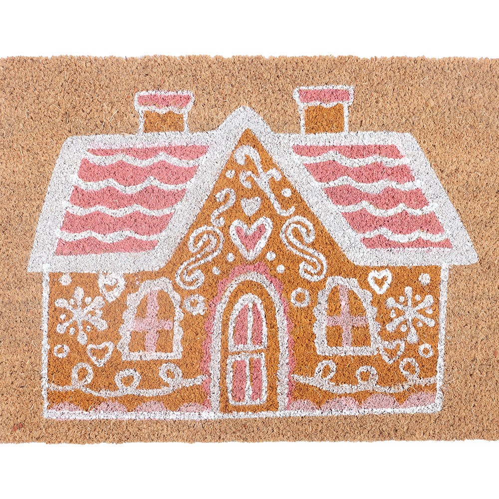Deurmat met motief van een natuurlijk roze peperkoekhuisje Deurmat met motief van een natuurlijk roze peperkoekhuisje