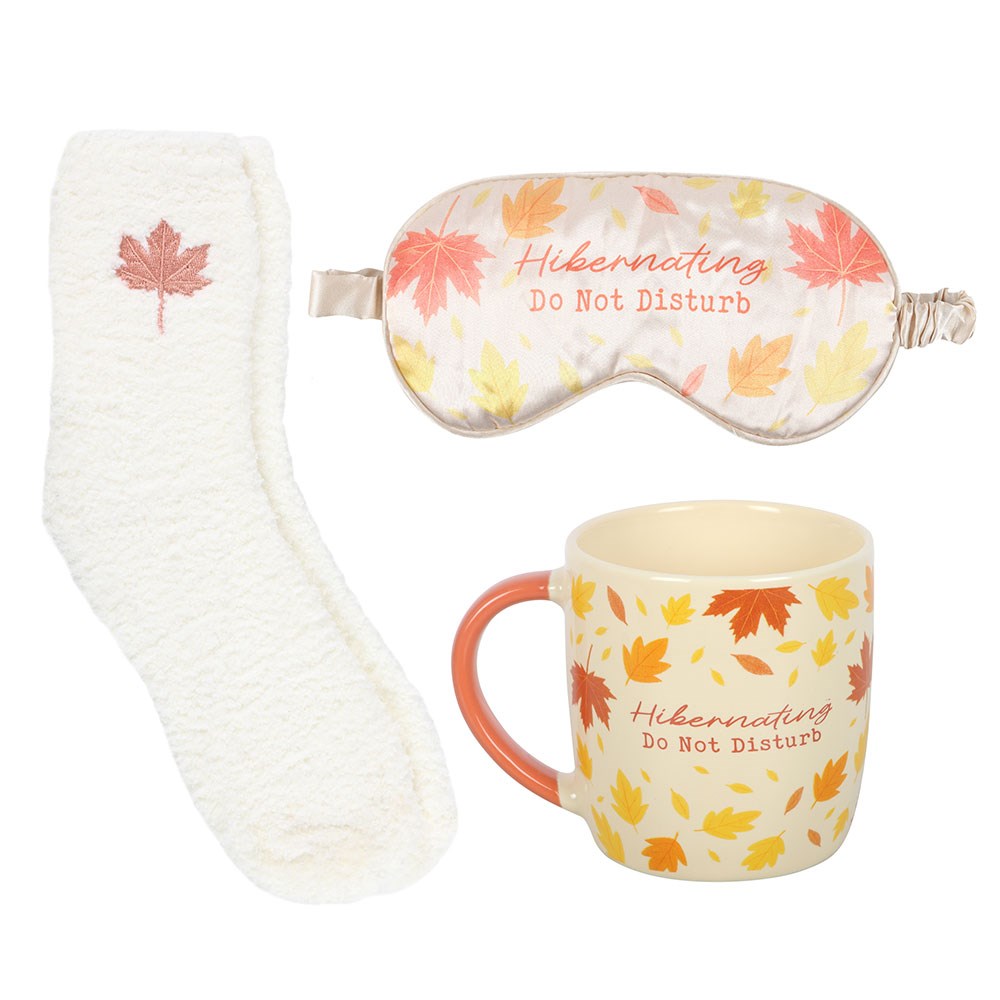 Kit de hibernação de outono com caneca, meias e máscara para os olhos