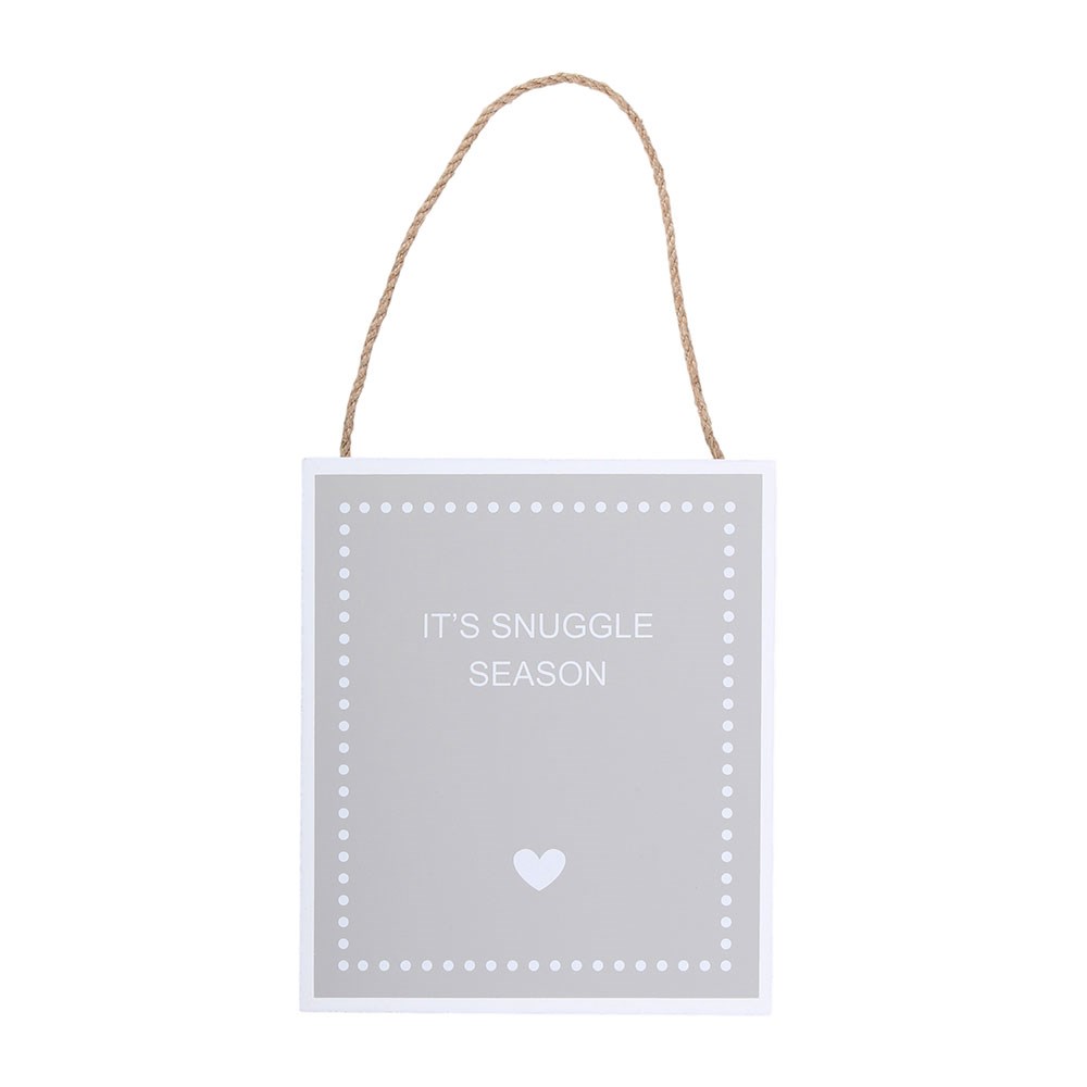 Ge ditt hem en mysig touch med denna rustika, grå hängskylt. Den är tillverkad av MDF i en mjuk grå nyans och har texten ”It’s Snuggle Season” samt en söt vit hjärtdetalj som ger extra charm. Den har en upphängningsslinga i rep längst upp, vilket gör den enkel att hänga upp på dörrar, väggar eller krokar runt om i hemmet. Med sin shabby chic-stil är den perfekt för höst- och vinterinredning eller som en omtänksam present till alla som älskar mysiga hemmakvällar.