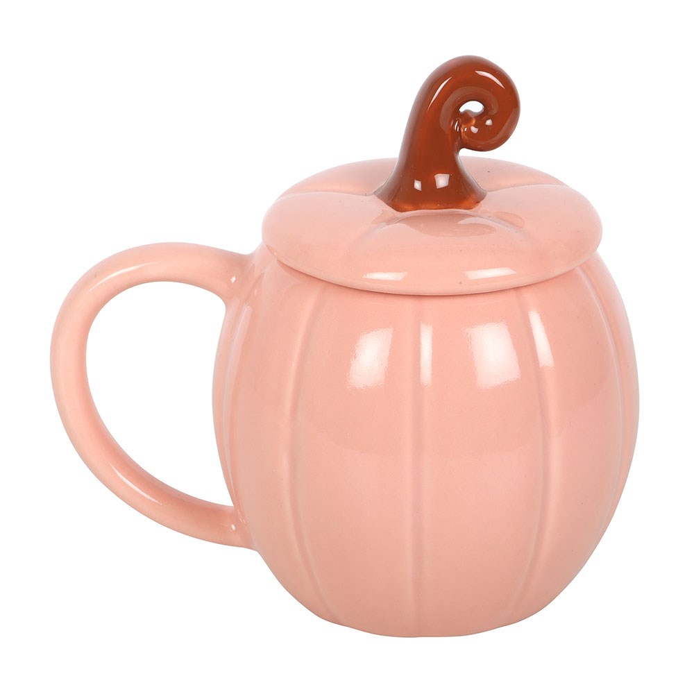 Sip your favourite autumn drinks in this pink pumpkin mug, complete with a curly-stemmed lid for an extra cute touch. Perfect for pumpkin spice lattes, hot chocolate, or tea, it makes a lovely gift for autumn lovers and quirky mug collections. Do not microwave. Hand wash only. Designed by Something Different Wholesale and part of the Pumpkin Pie collection of pink and orange autumn decor and fall giftware.