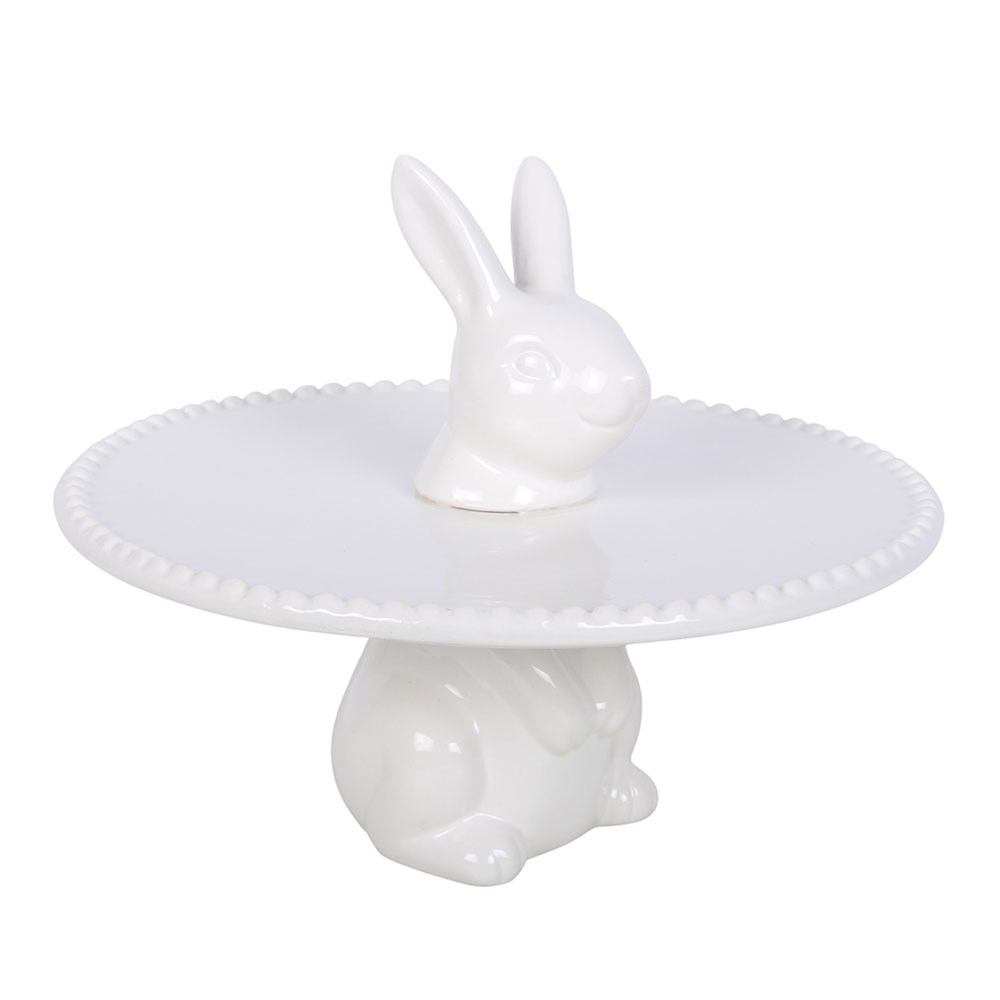 Add a playful touch to afternoon tea with this delightful rabbit cake and treat stand. Featuring a seated white ceramic bunny, his body forms the base of the stand while his head pops up through the centre of the plate as the playful focal point. Perfect for spring gatherings, Easter celebrations or as a thoughtful gift for keen bakers and animal lovers, this eye-catching stand brings a light-hearted feel to any table setting while still looking beautifully elegant.